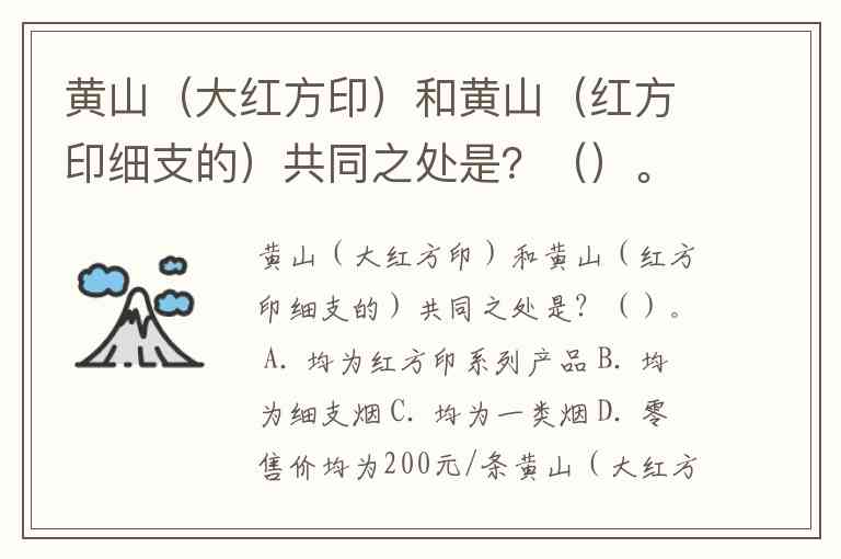 黄山(大红方印)和黄山(红方印细支的)共同之处是?()。 A. 均为红方印系列产品 B. 均为细支烟 C. 均为一类烟 D. 零售价均为200元/条