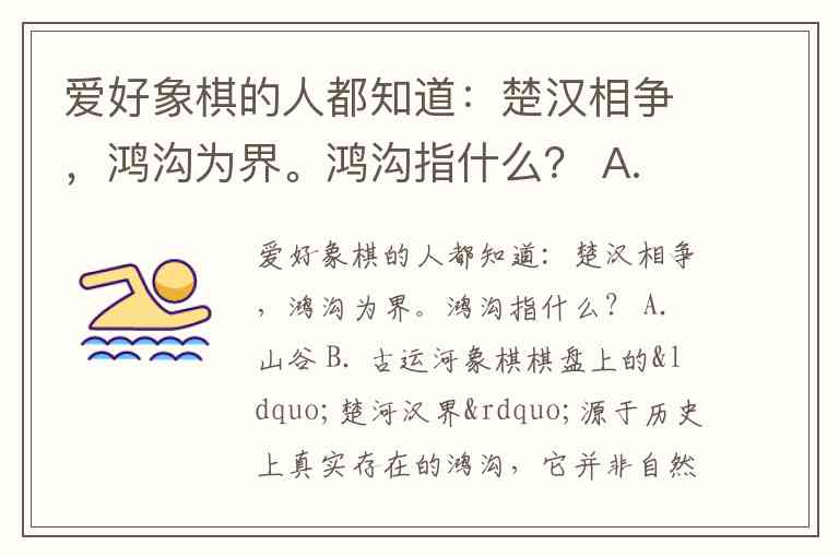 爱好象棋的人都知道:楚汉相争,鸿沟为界。鸿沟指什么? A. 山谷 B. 古运河