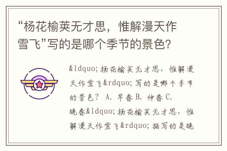 “杨花榆荚无才思,惟解漫天作雪飞”写的是哪个季节的景色? A. 早春 B. 仲春 C. 晚春