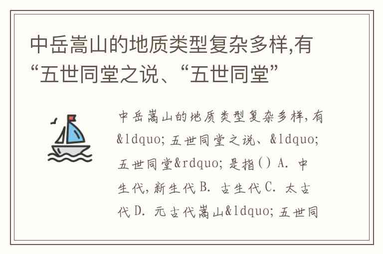 中岳嵩山的地质类型复杂多样,有“五世同堂之说、“五世同堂”是指( ) A. 中生代,新生代 B. 古生代 C. 太古代 D. 元古代