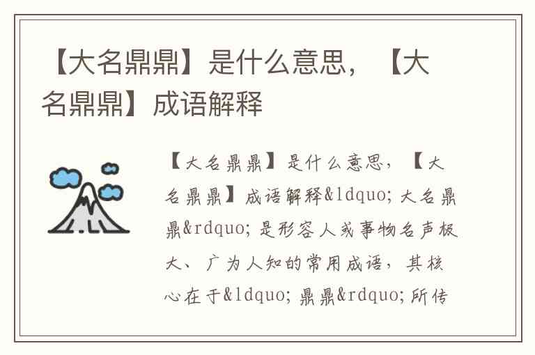 【大名鼎鼎】是什么意思,【大名鼎鼎】成语解释