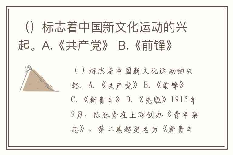 ()标志着中国新文化运动的兴起。A.《共产党》 B.《前锋》 C.《新青年》 D.《先驱》