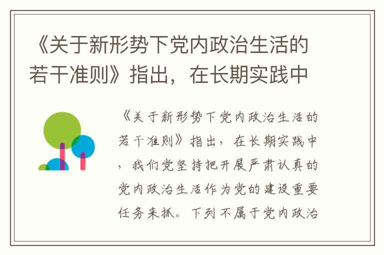 《关于新形势下党内政治生活的若干准则》指出,在长期实践中,我们党坚持把开展严肃认真的党内政治生活作为党的建设重要任务来抓。下列不属于党内政治生活基本规范主要内容的是( )。A.实事求是 B.理论联系实际 C.惩前毖后,治病救人 D.密切联系群众