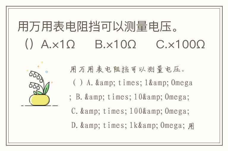 用万用表电阻挡可以测量电压。()A.×1Ω B.×10Ω C.×100Ω D.×1kΩ