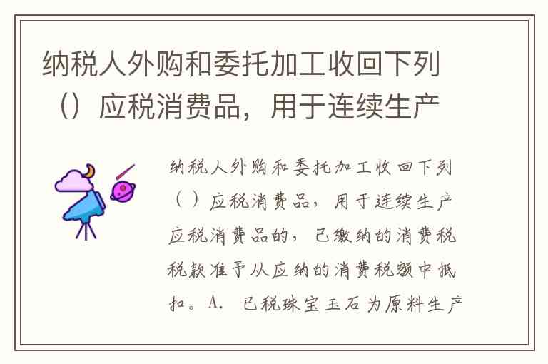 外购或委托加工收回的已税珠宝玉石,若用于生产其他贵重首饰及珠宝玉石(非金银首饰),准予抵扣已纳税款。需注意,若生产金银首饰(零售环节征税),则不得扣除珠宝玉石已纳税额。本题未限定为金银首饰,故A选项符合条件。