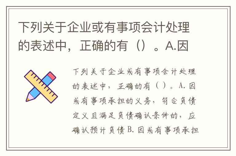 下列关于企业或有事项会计处理的表述中,正确的有()。A.因或有事项承担的义务,符合负债定义且满足负债确认条件的,应确认预计负债 B.因或有事项承担的潜在义务,不应确认为预计负债 C.因或有事项形成的潜在资产,应单独确认为一项资产 D.因或有事项预期从第三方获得的补偿,补偿金额很可能收到的,应单独确认为一项资产