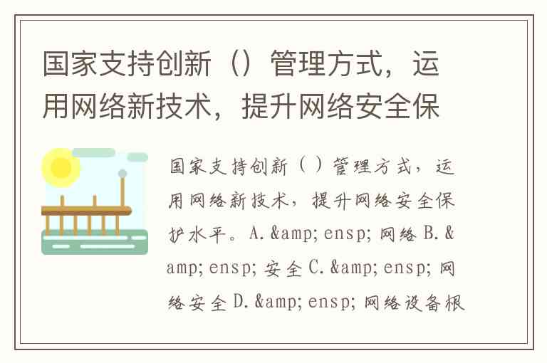 国家支持创新()管理方式,运用网络新技术,提升网络安全保护水平。A. 网络 B. 安全 C. 网络安全 D. 网络设备