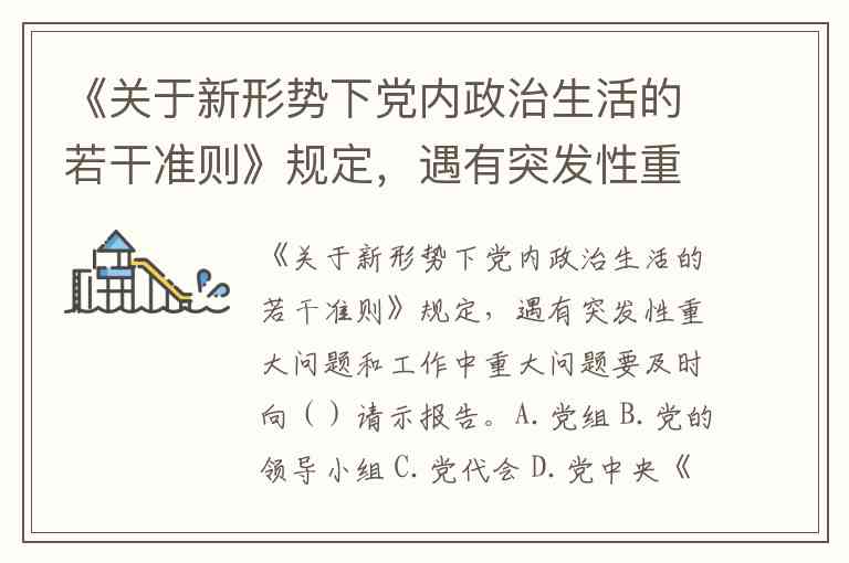 《关于新形势下党内政治生活的若干准则》规定,遇有突发性重大问题和工作中重大问题要及时向()请示报告。A.党组 B.党的领导小组 C.党代会 D.党中央