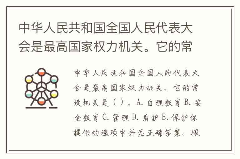 中华人民共和国全国人民代表大会是最高国家权力机关。它的常设机关是()。A.自理教育 B.安全教育 C.管理 D.看护 E.保护