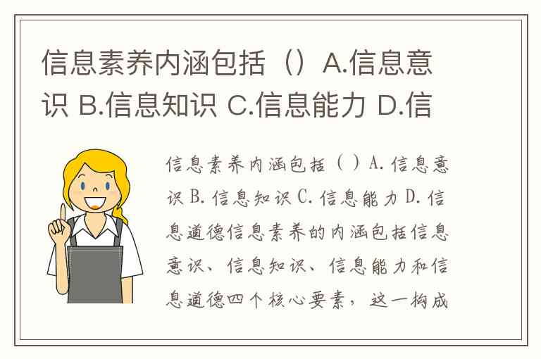 信息素养的内涵包括信息意识、信息知识、信息能力和信息道德四个核心要素,这一构成得到国内外学术研究的广泛认同。