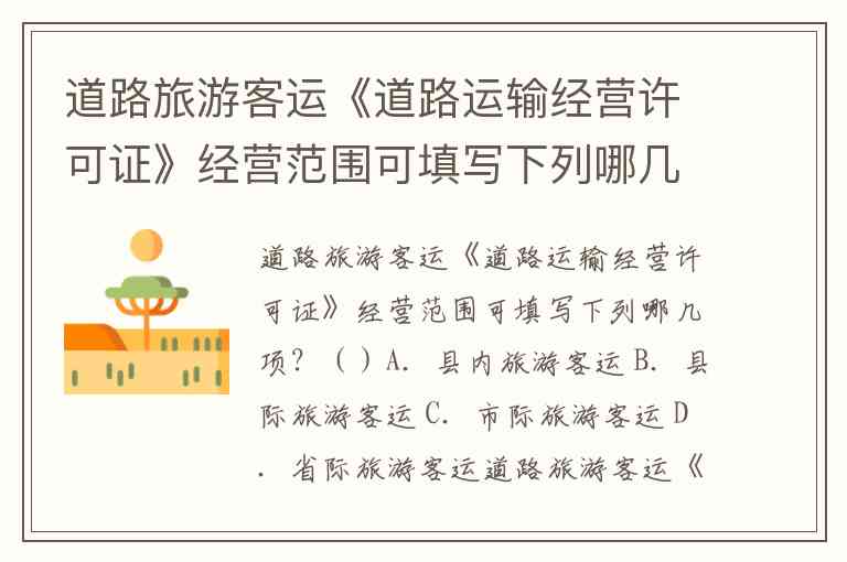 道路旅游客运《道路运输经营许可证》经营范围可填写下列哪几项?()A.县内旅游客运 B.县际旅游客运 C.市际旅游客运 D.省际旅游客运