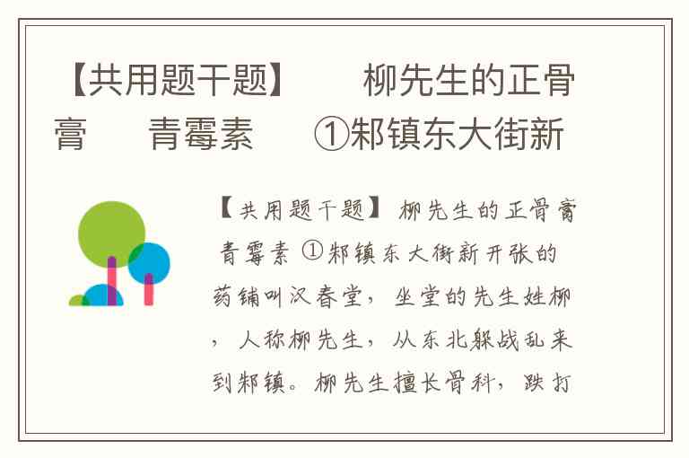 【共用题干题】 柳先生的正骨膏 青霉素 ①邾镇东大街新开张的药铺叫汉春堂,坐堂的先生姓柳,人称柳先生,从东北躲战乱来到邾镇。柳先生擅长骨科,跌打损伤脱臼骨折手到病除,据说,他熬制的外敷膏药正骨膏更是神奇,无论多严重的骨折,经柳先生手法复位后,贴上正骨膏再用竹片固定,少则十日多则一月,断骨愈好如初。外人说伤筋动骨一百天,这话在柳先生这里就成了无稽之谈。 ②日本人攻打邾镇的那天,一颗炮弹落在颜老爷的家里,三间大堂屋成了废墟,颜老爷正在前厅伺候他的花树,震得昏了过去。半日后醒来,他看到养在莲花缸里的那株花树,如小臂粗的树干被炸断,仅连接着一部分树皮,颜老爷两眼一黑又昏过去。那株树是儿子带回来的,儿子的喜好,颜老爷视为珍宝。儿子和他的部队在台儿庄与日本人决战时,壮烈殉国,老人把儿子的一捧骨灰埋在树根下,更是视树为生命。 ③现在,儿子的树被日本人毁了,颜老爷像被挖了心一样。他失魂落魄地在院子的残垣断壁间转圈,不知如何是好。许久,他一下子想起柳先生,救人的命和救树的命都是救命,也是心急乱求医,柳先生成了他救命的稻草,一路跌跌撞撞来到柳先生的药铺,全不顾大街上枪弹横飞,见到柳先生颜老爷扑通一声就跪下了。柳先生来到花树前,小心地扶起来,把断茬对齐捏实贴上正骨膏,周匝固定木棍。三日后,树叶竟振作起来,十日后,树叶重新泛绿,一月后,树干断处长好了。颜老爷一脸泪痕,紧抓着柳先生的手说:“你救了我儿子,也救了我啊!” ④邾镇沦陷后,病人挤满了柳先生的药铺,断胳膊断腿的病人很多。这天,柳先生在药铺里配药,心里默念着药方,川续断十钱,右手去药匣抓药,放进左手的戥子里一称,正好。继续一味味抓药,骨碎补十钱、藏红花十钱…… ⑤汉春堂的大门咣当一声开了,听声音不是手推开的,是脚踢开的。一群日本兵涌进来,后边还抬着一个嗷嗷乱叫的军官,候诊的病人吓得四处躲藏。翻译官提着手枪走近柳先生,说:“听说你医术高明,请你为少佐先生治伤,伤愈后重赏。”说着指指乱叫的日本人,“少佐先生率兵进山剿匪,被八路的地雷炸伤,两条腿骨头断了。” ⑥柳先生一怔,然后缓步上前,看看担架上那张被疼痛扭曲的脸,认识。邾镇沦陷后,这个日本人牵着一条凶犬,在大街上咬死咬伤的人不计其数。 柳先生指点把病人放到诊床上,然后双手在断腿上拿捏,病人忽然疼得又叫起来,日本兵哗哗地拉枪栓,黑洞洞的枪口一齐对着柳先生。柳先生好像没看见,继续接骨,修正碎骨后外敷正骨膏再竹片固定。一条腿整好换另一条腿,有条不紊。 “好了,隔日过来换膏药。”柳先生说着直起身去洗手,不再说话。翻译官放下大把银元,日本兵抬着少佐走了。 ⑦隔日,翻译官抬着那个日本少佐来换膏药,又放下大把银元。又隔日,那个日本少佐被抬过来换膏药,翻译官再放下大把银元。这些日子,柳先生药铺里来治病的人越来越少,以致门可罗雀。半月后,日本少佐是拄着拐杖来的,两个日本兵扶着,见了柳先生露出一脸笑,不住地说:“你的,良民大大的!”柳先生也笑,只是不多说话。日本少佐换完药走了,当然还留下许多银元。 ⑧柳先生听到大门口哗啦一声响,出门看,是颜老爷把他的莲花缸摔碎在柳先生的门口,还把莲花缸里的花树嘎吱一下当腰折断,去在地上愤愤而去,街上好多围观的人,恨恨地吐下唾沫,转身散去。 柳先生一脸淡然。 ⑨一个月后,是日本少佐自己走着来的,翻译官跟在后面抱着一坛酒。柳先生和日本少佐已成了熟人,最后一次换完药开始喝酒,喝酒的时候,推杯换盏很是热闹,一坛酒喝光还没尽兴,柳先生提议翻译官再去拿一坛酒来。翻译官抱着酒坛子回来时,日本少佐躺在地上已经死了,面目狰狞,胸口插着一把刀,刀柄深入,污血满地。柳先生在院里正给颜老爷的那棵花树换药,莲花缸换了新的,缸里的花树折断处周匝固定着木棍,花树枝青叶绿,一派盎然。 ⑩刑场上,翻译官问柳先生:“你当初为什么给少佐先生医伤?”“我是医病的先生,不能坏了先生的名声。”柳先生说。“那你干嘛又杀死他?”翻译官追问。“我是中国人,不能坏了中国人的名声!”柳先生脱口而答。 (选自2018年《小说月刊》第5期,有改动) 《柳先生的正骨膏》中多次写颜老爷的那株“花树”,请简要分析其作用。