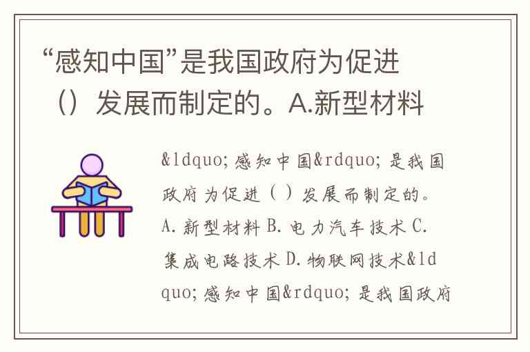 “感知中国”是我国政府为促进()发展而制定的。A.新型材料 B.电力汽车技术 C.集成电路技术 D.物联网技术