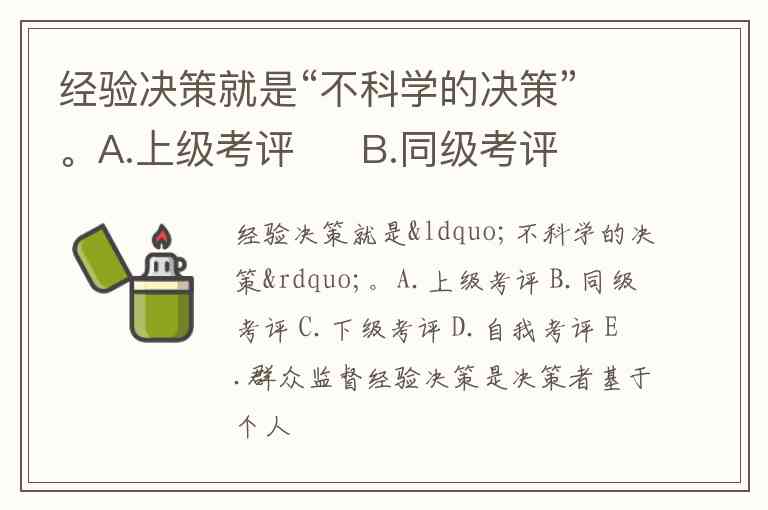 经验决策就是“不科学的决策”。A.上级考评 B.同级考评 C.下级考评 D.自我考评 E.群众监督