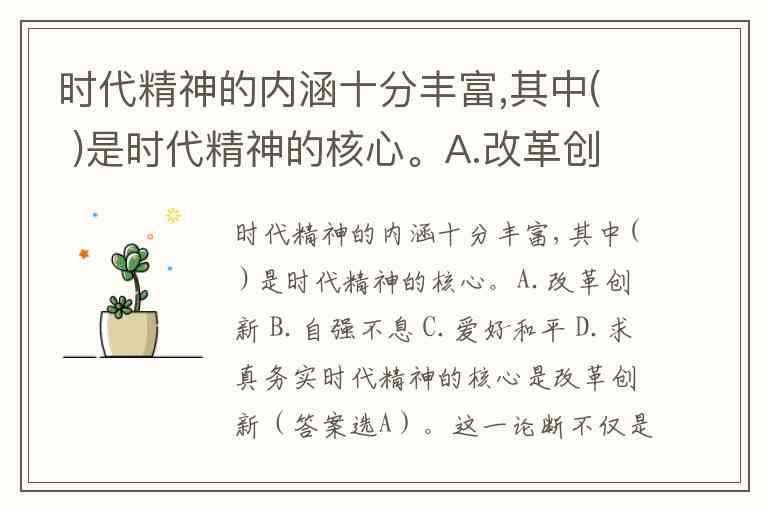 时代精神的内涵十分丰富,其中( )是时代精神的核心。A.改革创新 B.自强不息 C.爱好和平 D.求真务实