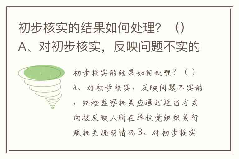 纪检监察机关在初步