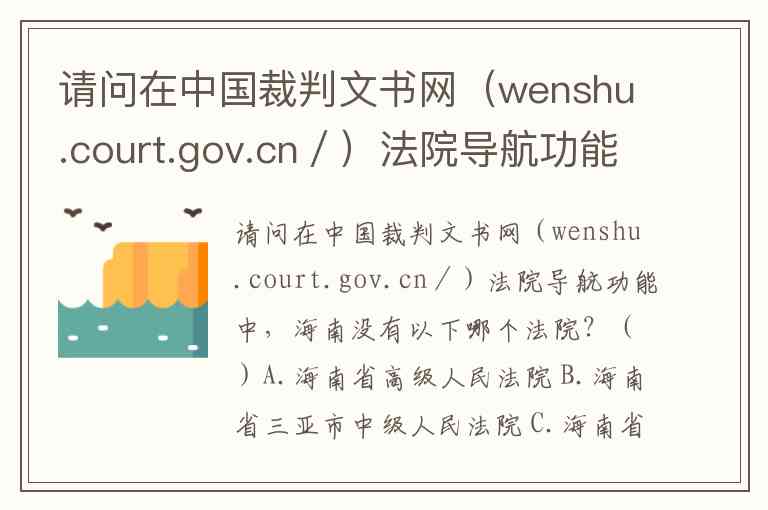 中国裁判文书网法院导航中海南省各级法院设置情况如下:包含海南省高级人民法院、