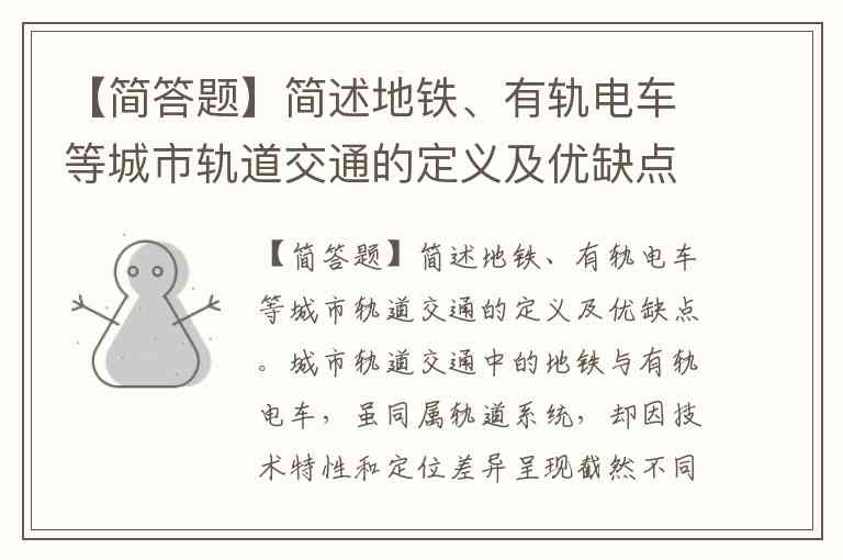 【简答题】简述地铁、有轨电车等城市轨道交通的定义及优缺点。