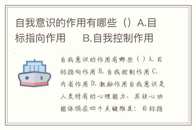 自我意识的作用有哪些()A.目标指向作用 B.自我控制作用 C.内省作用 D.激励作用