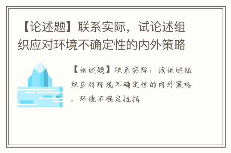 【论述题】联系实际,试论述组织应对环境不确定性的内外策略。