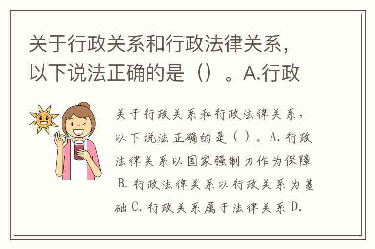 关于行政关系和行政法律关系,以下说法正确的是()。A.行政法律关系以国家强制力作为保障 B.行政法律关系以行政关系为基础 C.行政关系属于法律关系 D.行政关系经行政法调整转为行政法律关系