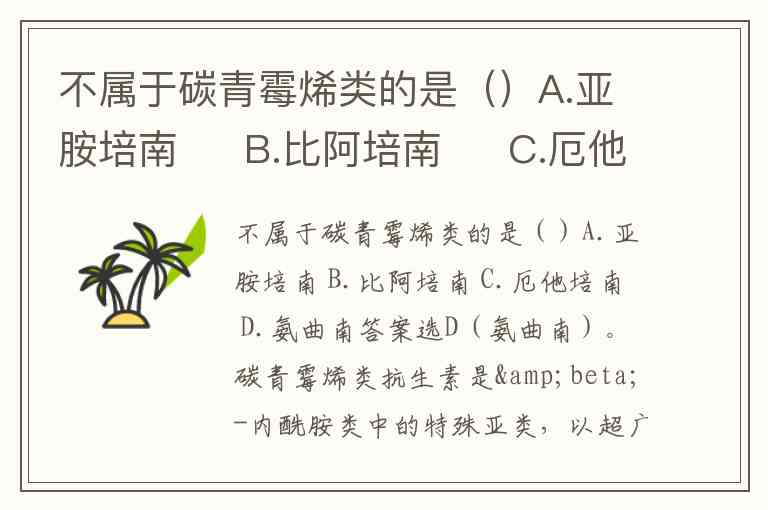 不属于碳青霉烯类的是()A.亚胺培南 B.比阿培南 C.厄他培南 D.氨曲南