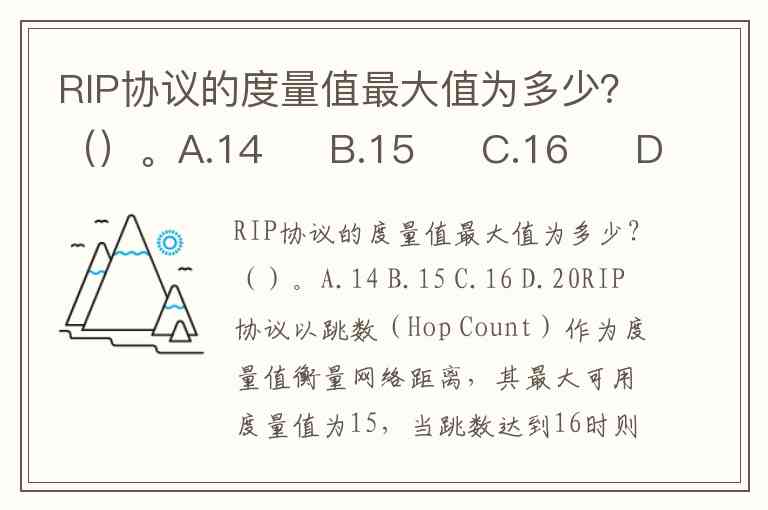 RIP协议的度量值最大值为多少?()。A.14 B.15 C.16 D.20