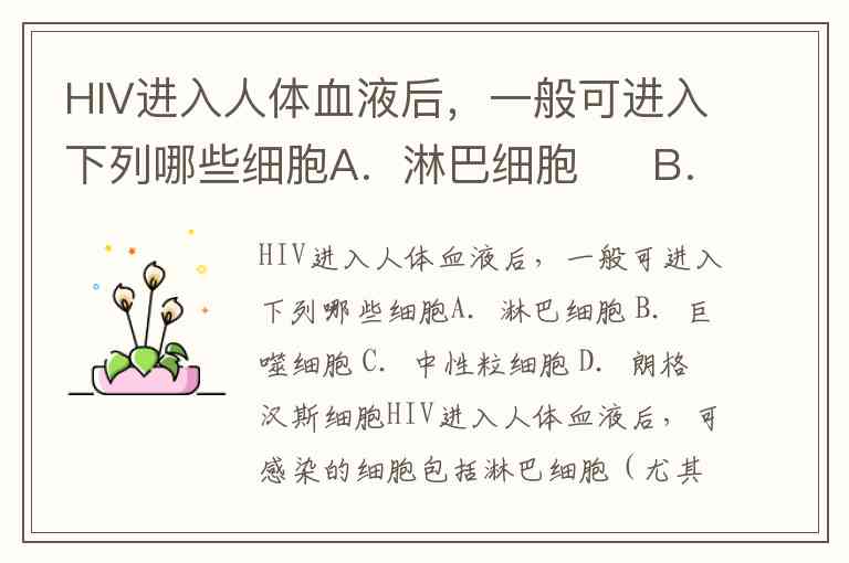 HIV进入人体血液后,一般可进入下列哪些细胞A.淋巴细胞 B.巨噬细胞 C.中性粒细胞 D.朗格汉斯细胞