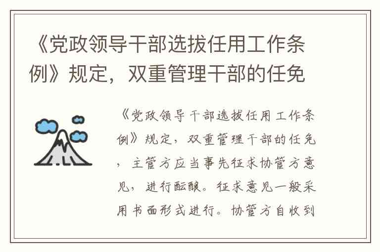 从实践看,这一标准得到多方面印证:《党政领导干部选拔任用规范手册》及部门联合规定(如国家林业局与公安部文件)均要求协管方在"一个月内作出回复",2019年普法考试试题及近年政策解读也将"一个月"作为标准答案。若双方意见不一致,正职任免需报上级党委组织部门协调,副职则由主管方决定,体现了"分工负责、权责清晰"的原则。这一设计既保障了协管方的监督审核权,又通过期限约束防止程序空转,是双重管理机制中确保干部任免规范高效的关键环节。