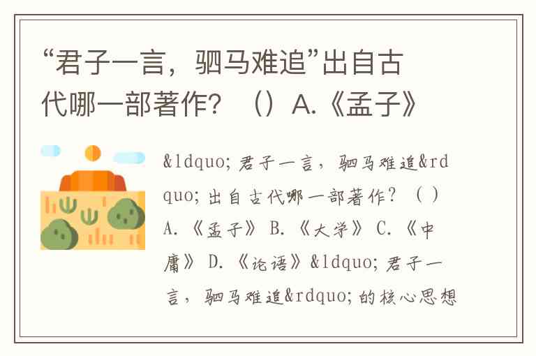 “君子一言,驷马难追”出自古代哪一部著作?()A.《孟子》 B.《大学》 C.《中庸》 D.《论语》