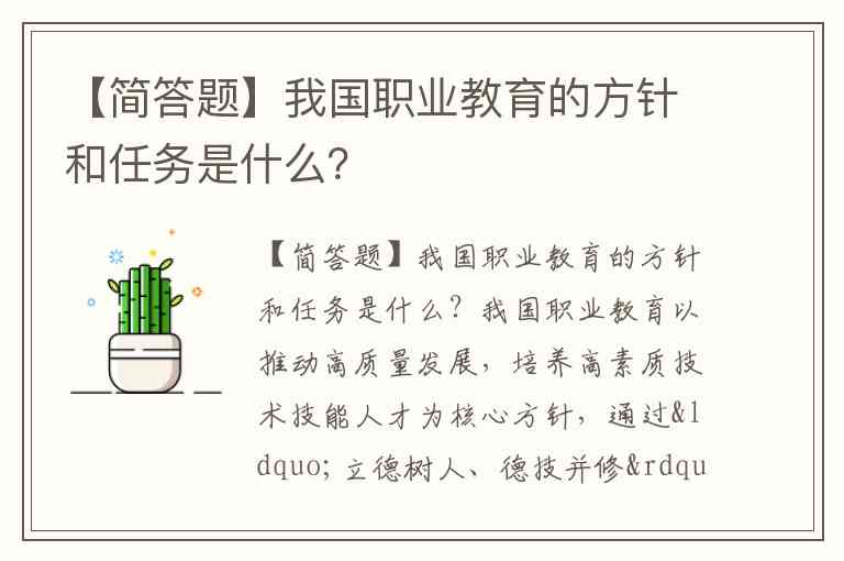 【简答题】我国职业教育的方针和任务是什么?