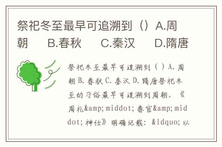 祭祀冬至最早可追溯到()A.周朝 B.春秋 C.秦汉 D.隋唐