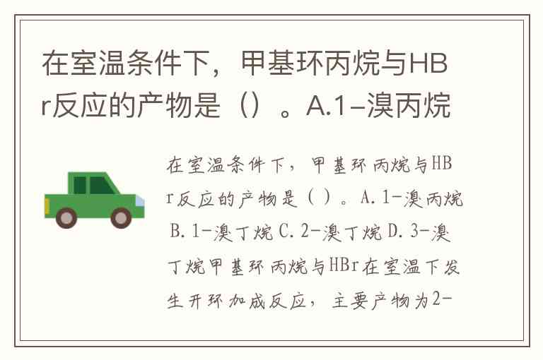 在室温条件下,甲基环丙烷与HBr反应的产物是()。A.1-溴丙烷 B.1-溴丁烷 C.2-溴丁烷 D.3-溴丁烷