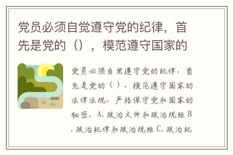 党员必须自觉遵守党的纪律,首先是党的(),模范遵守国家的法律法规,严格保守党和国家的秘密。A.政治文件和政治规矩 B.政治纪律和政治规矩 C.政治纪律和政治文件 D.政治规定和政治规矩