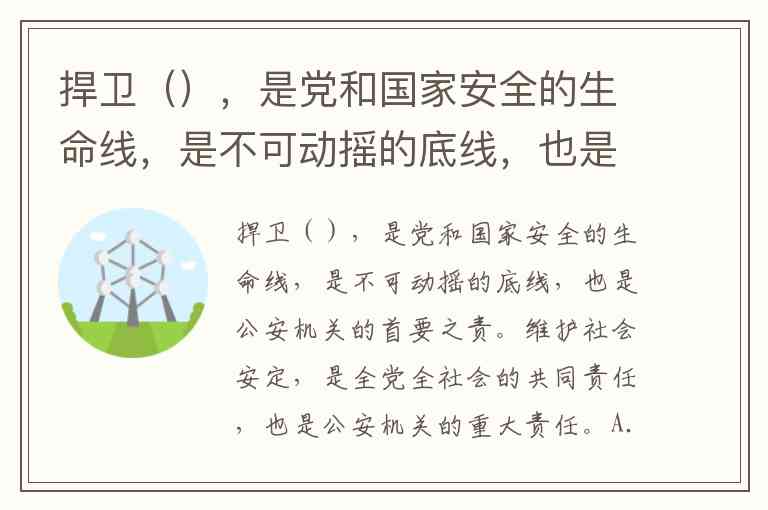 捍卫(),是党和国家安全的生命线,是不可动摇的底线,也是公安机关的首要之责。维护社会安定,是全党全社会的共同责任,也是公安机关的重大责任。A.国家 B.法律 C.文化 D.政治安全