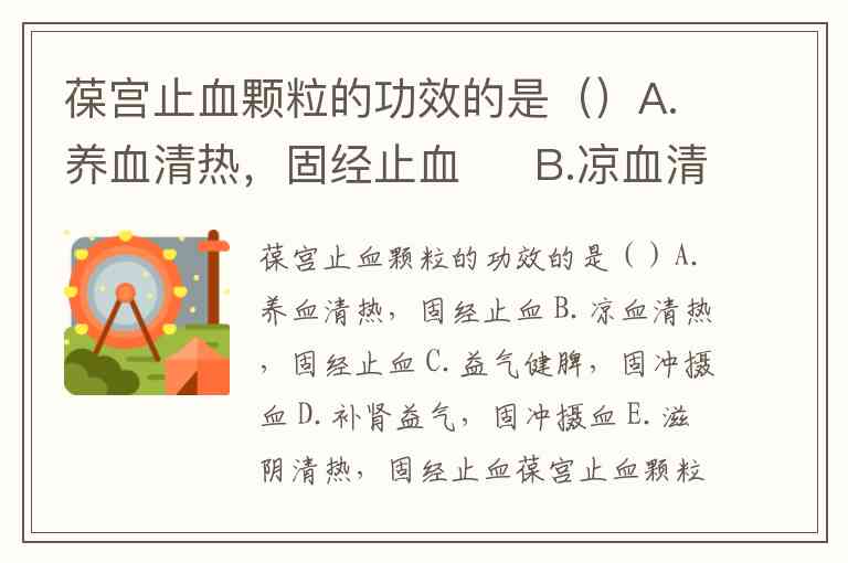 葆宫止血颗粒的功效是(E. 滋阴清热,固经止血)