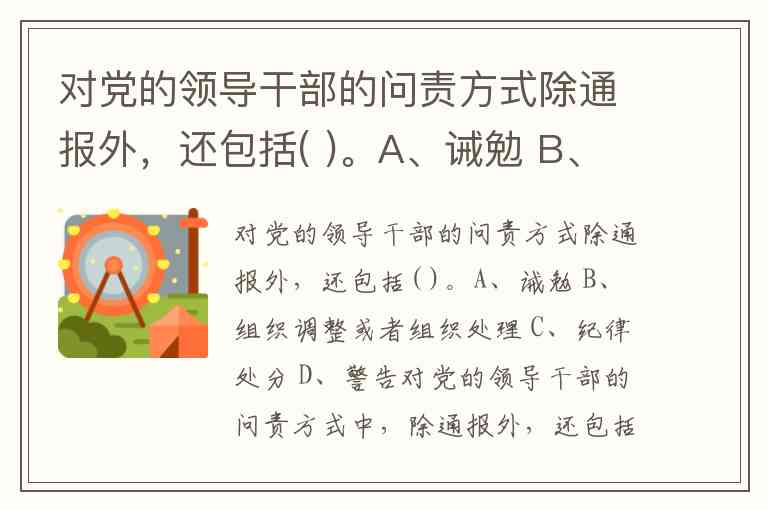 对党的领导干部的问责方式除通报外,还包括( )。A、诫勉 B、组织调整或者组织处理 C、纪律处分 D、警告