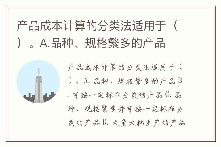 产品成本计算的分类法适用于()。A.品种、规格繁多的产品 B.可按一定标准分类的产品 C.品种、规格繁多并可按一定标准分类的产品 D.大量大批生产的产品