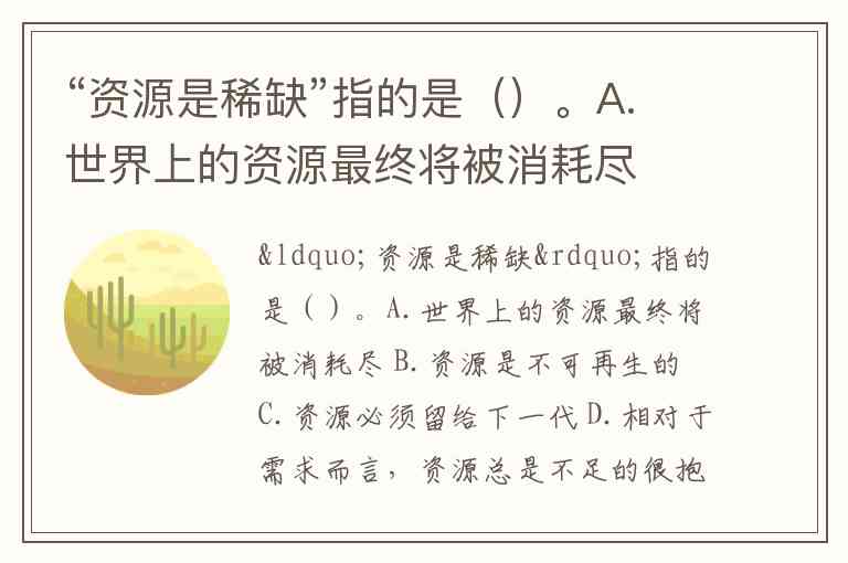 “资源是稀缺”指的是()。A.世界上的资源最终将被消耗尽 B.资源是不可再生的 C.资源必须留给下一代 D.相对于需求而言,资源总是不足的