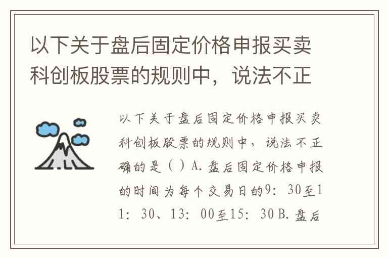 根据《上交所科创板股票盘后固定价格交易指引》及相关规则,以下为各选项分析: