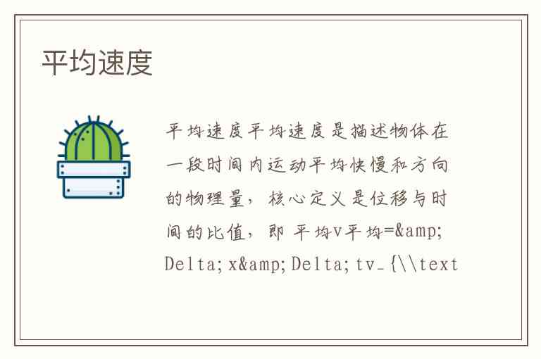 平均速度是描述物体在一段时间内运动平均快慢和方向的物理量,核心定义是位移与时间的比值,即 ,其中 是位移(起点到终点的直线距离,有方向), 是总时间。作为矢量,它的方向与位移方向一致,例如从A点向东移动到B点,平均速度方向就是向东。
