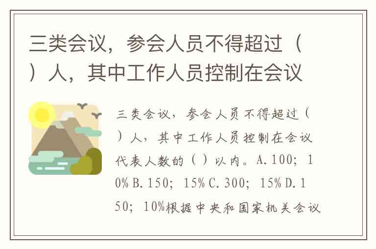 三类会议,参会人员不得超过()人,其中工作人员控制在会议代表人数的()以内。A.100;10% B.150;15% C.300;15% D.150;10%