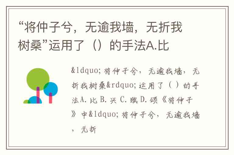 “将仲子兮,无逾我墙,无折我树桑”运用了()的手法A.比 B.兴 C.赋 D.颂