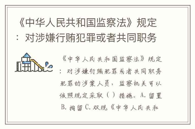 《中华人民共和国监察法》规定:对涉嫌行贿犯罪或者共同职务犯罪的涉案人员,监察机关可以依照规定采取()措施。A.留置 B.拘留 C.双规