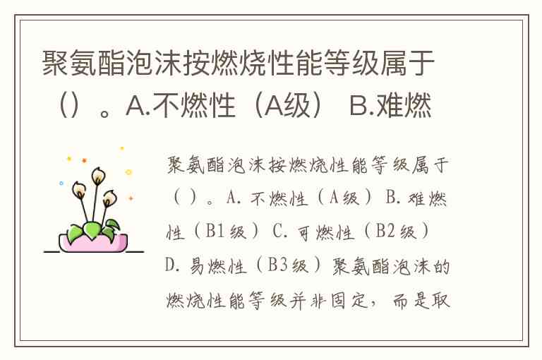 聚氨酯泡沫按燃烧性能等级属于()。A.不燃性(A级) B.难燃性(B1级) C.可燃性(B2级) D.易燃性(B3级)