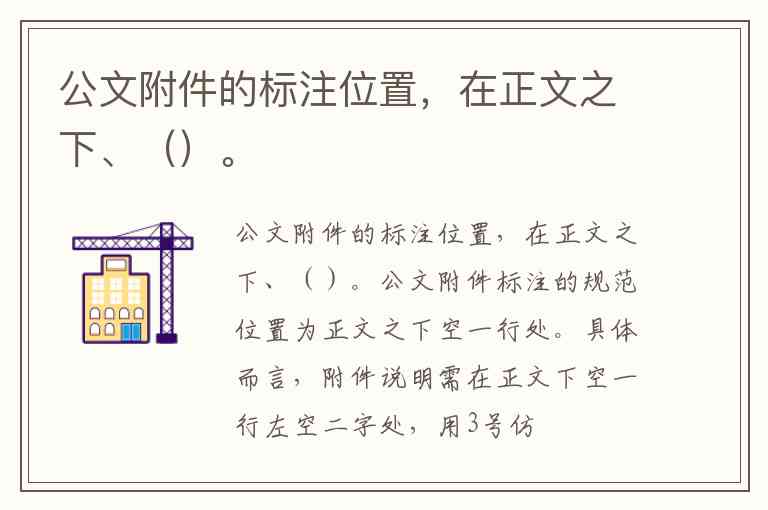 公文附件标注的规范位置为正文之下空一行处。具体而言,附件说明需在正文下空一行左空二字处,用3号仿
