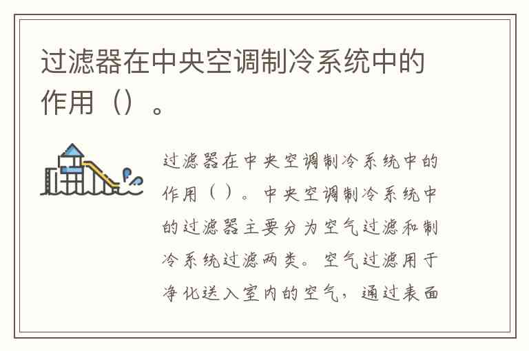 中央空调制冷系统中的过滤器主要分为空气过滤和制冷系统过滤两类。空气过滤用于净化送入室内的空气,通过表面或深层过滤器(如初效、中效、高效过滤器),利用拦截、惯性、扩散、重力、静电等效应去除灰尘、花粉等杂质,提升空气质量,防止设备积灰和延长使用寿命,满足洁净室不同洁净度要求。制冷系统过滤器(如干燥过滤器、油分离器等)安装在冷凝器与膨胀阀之间,集干燥与过滤功能于一体,吸收冷媒中的水分防止冰堵