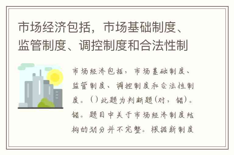 市场经济包括,市场基础制度、监管制度、调控制度和合法性制度。( )此题为判断题(对,错)。