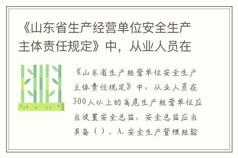《山东省生产经营单位安全生产主体责任规定》中,从业人员在300人以上的高危生产经营单位应当设置安全总监。安全总监应当具备()。A.安全生产管理经验 B.注册安全工程师资格 C.熟悉安全生产业务 D.掌握安全生产相关法律法规知识