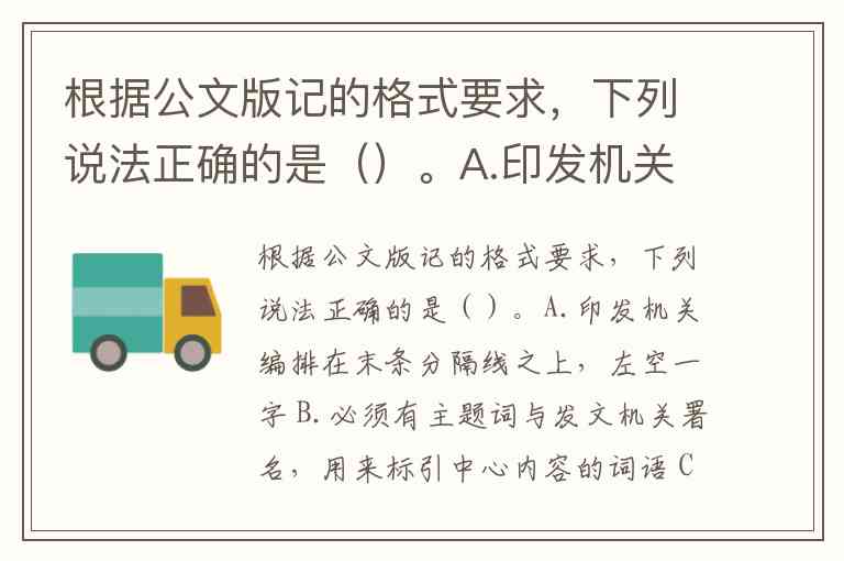 根据公文版记的格式要求,下列说法正确的是()。A.印发机关编排在末条分隔线之上,左空一字 B.必须有主题词与发文机关署名,用来标引中心内容的词语 C.抄送机关在印发机关和印发日期之上一行,左右各空一字编排 D.印发日期用阿拉伯数字将年、月、日标全,月、日不编虚位,后加“印发”